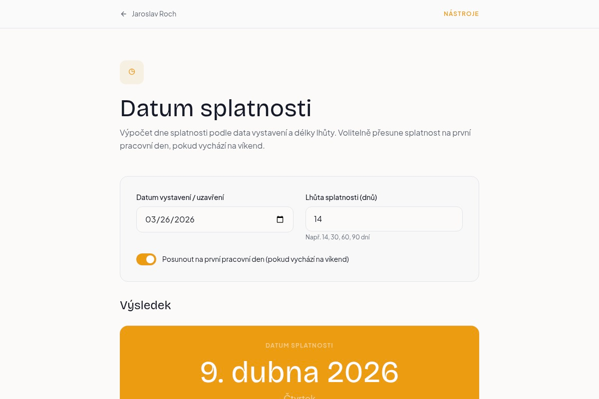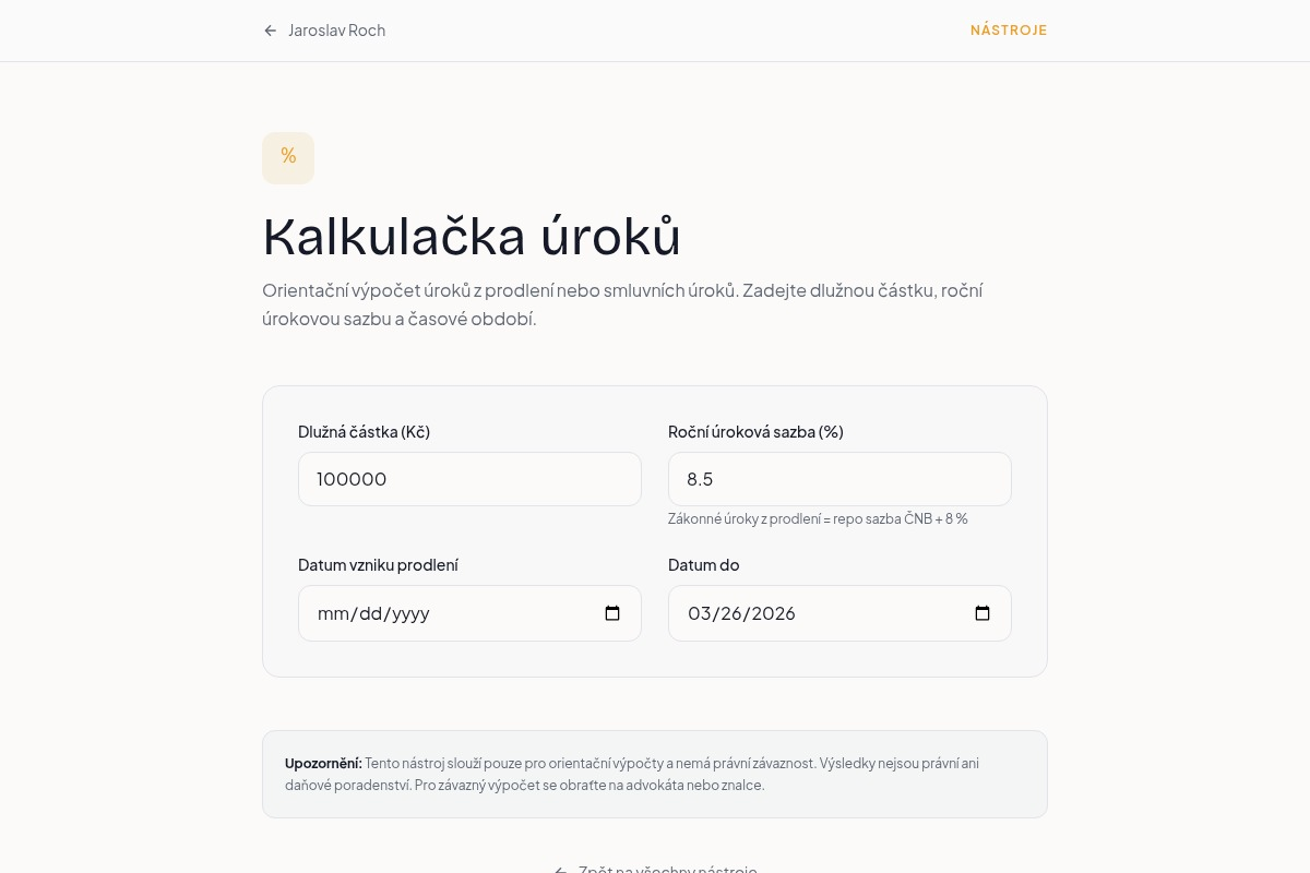 Praktické online nástroje pro rychlé orientační výpočty a práci s právními a obchodními situacemi.