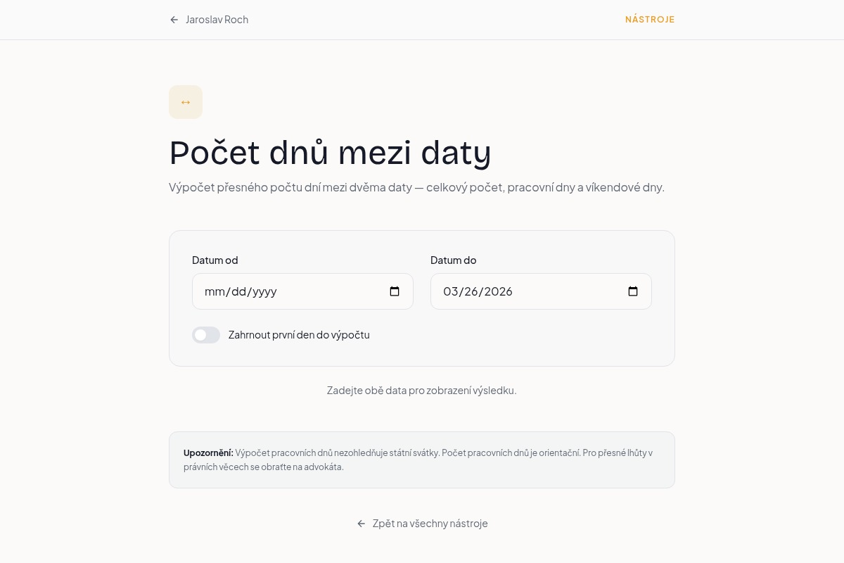 Jednoduchý nástroj pro výpočet počtu dnů mezi dvěma daty.